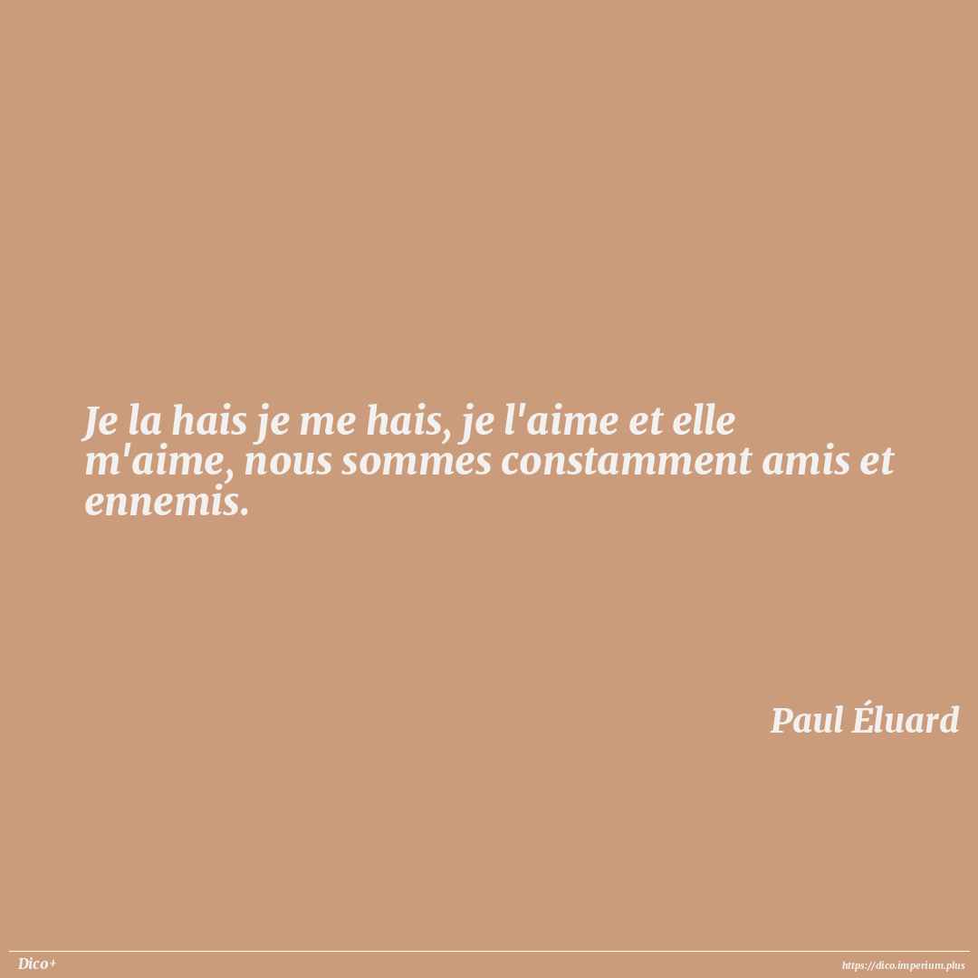 Je la hais je me hais, je l'aime et elle m'aime, nous sommes constamment amis et ennemis.