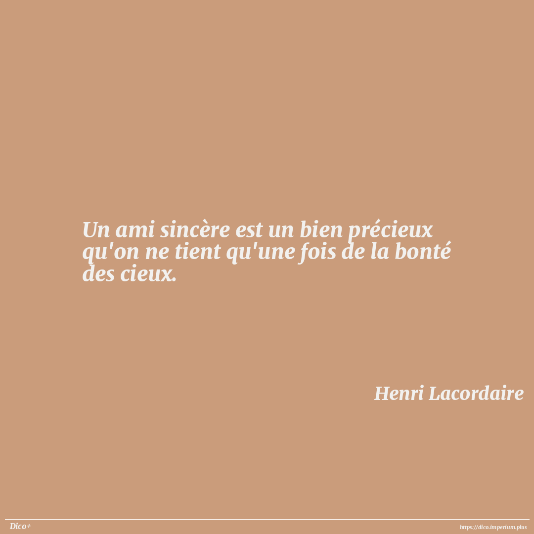 Un ami sincère est un bien précieux qu'on ne tient qu'une fois de la bonté des cieux.