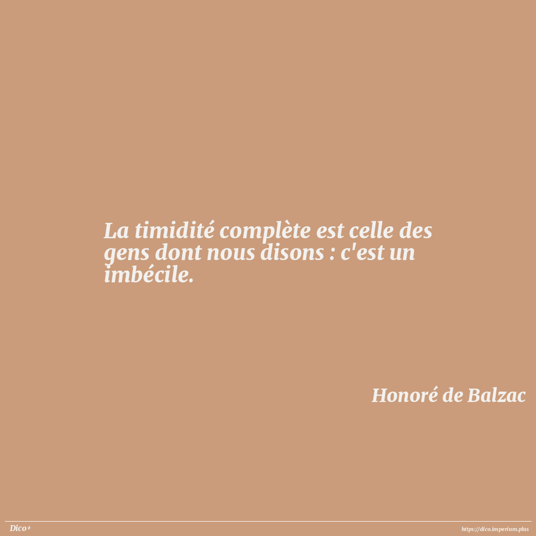 La timidité complète est celle des gens dont nous disons : c'est un imbécile.