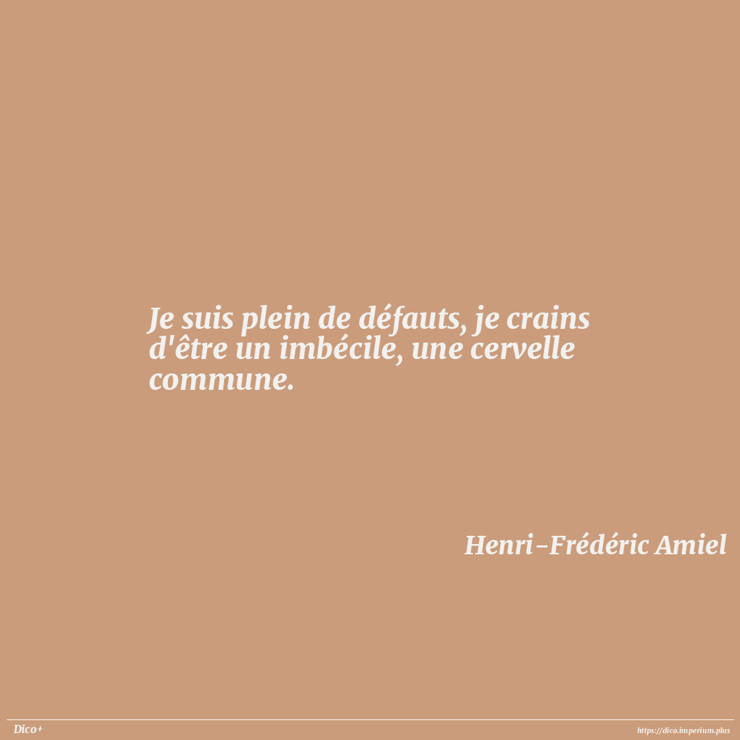 Je suis plein de défauts, je crains d'être un imbécile, une cervelle commune.