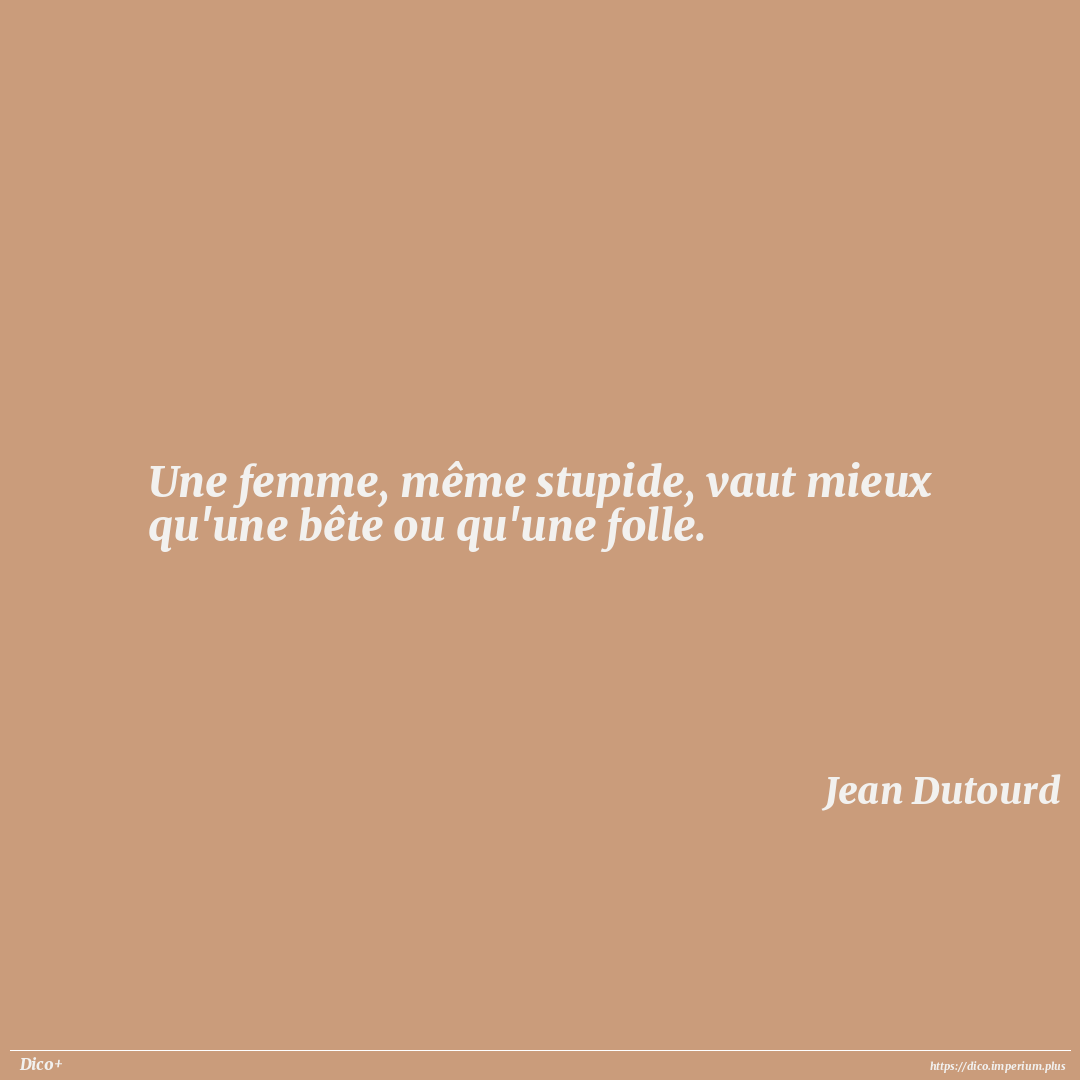 Une femme, même stupide, vaut mieux qu'une bête ou qu'une folle.