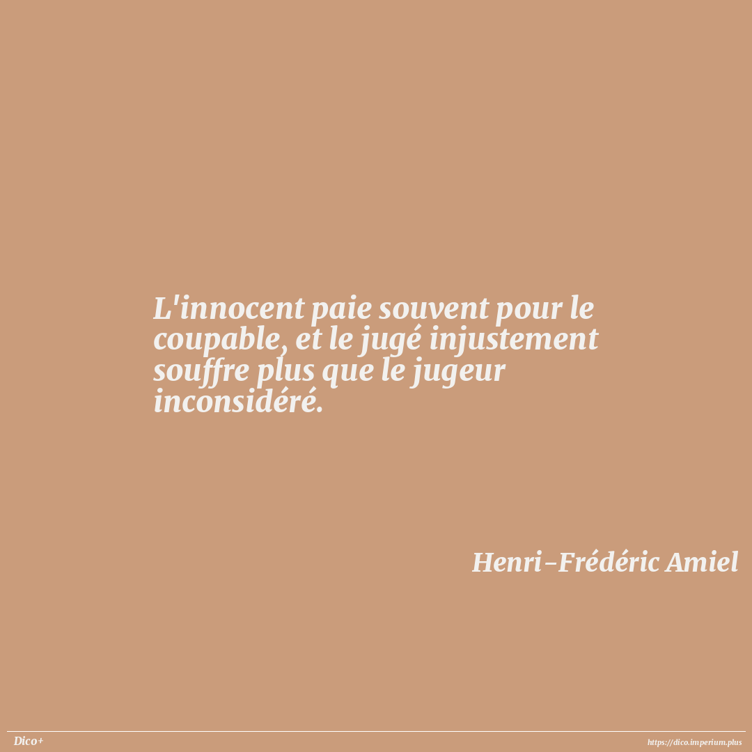 L'innocent paie souvent pour le coupable, et le jugé injustement souffre plus que le jugeur inconsidéré.