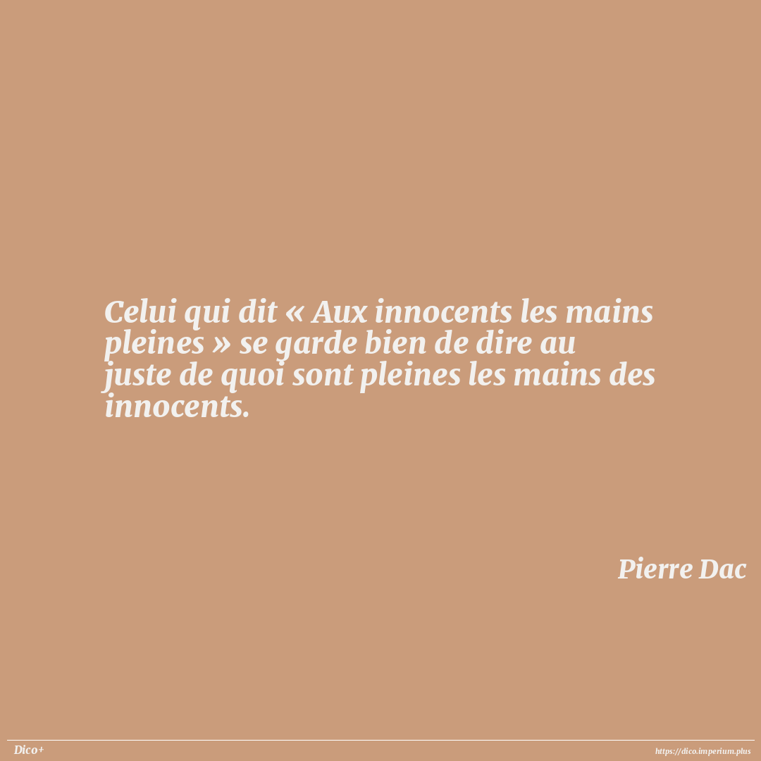 Celui qui dit « Aux innocents les mains pleines » se garde bien de dire au juste de quoi sont pleines les mains des innocents.