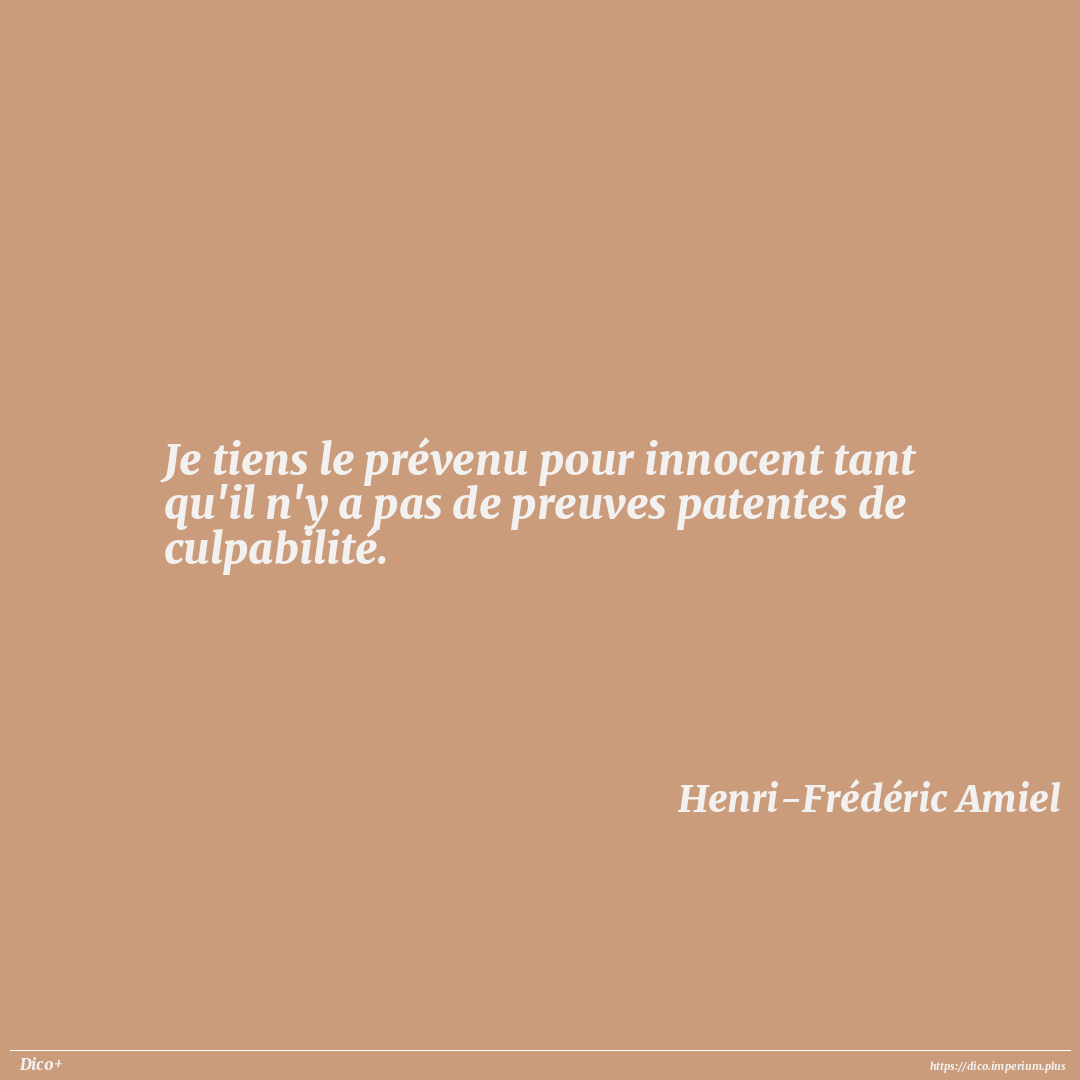 Je tiens le prévenu pour innocent tant qu'il n'y a pas de preuves patentes de culpabilité.