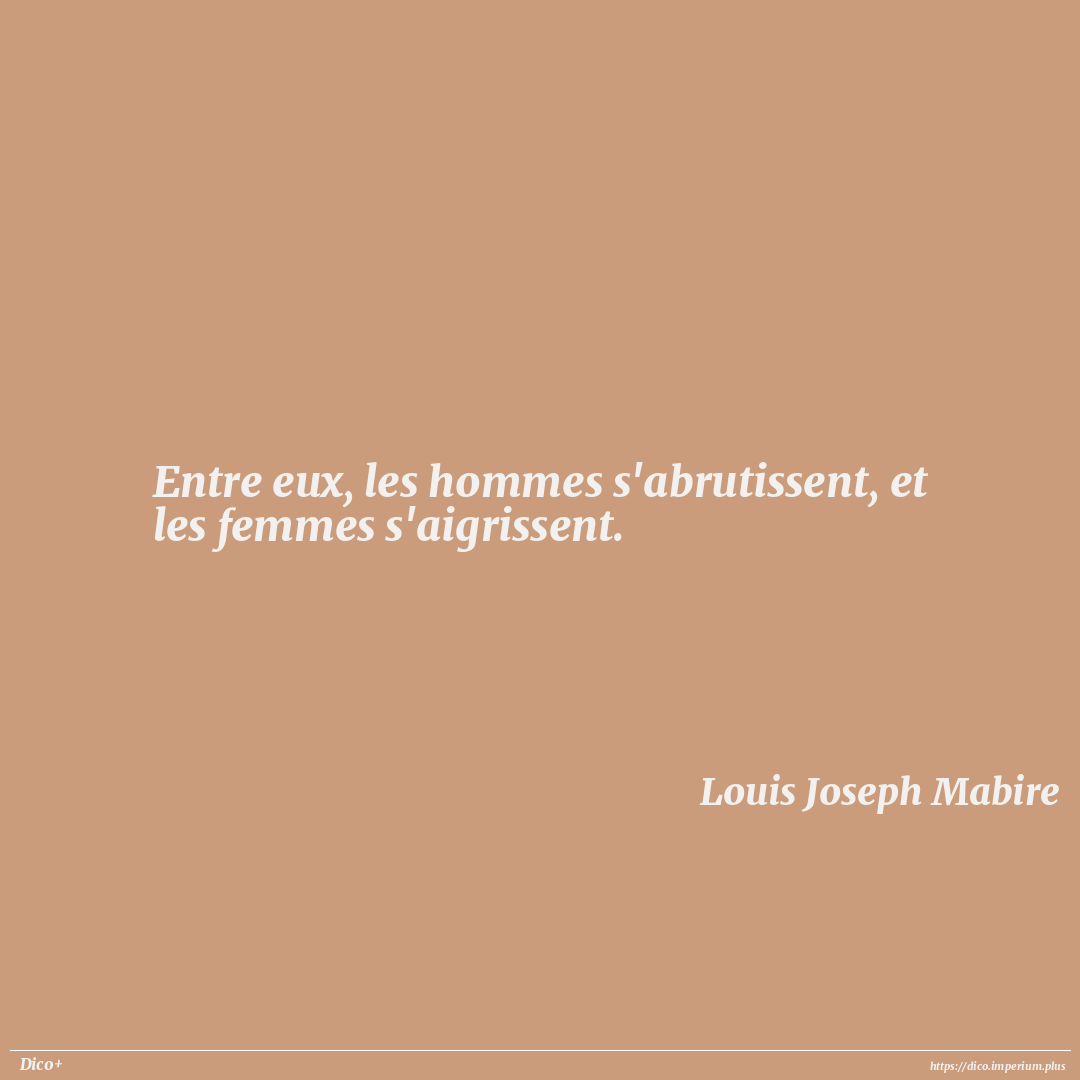 Entre eux, les hommes s'abrutissent, et les femmes s'aigrissent.