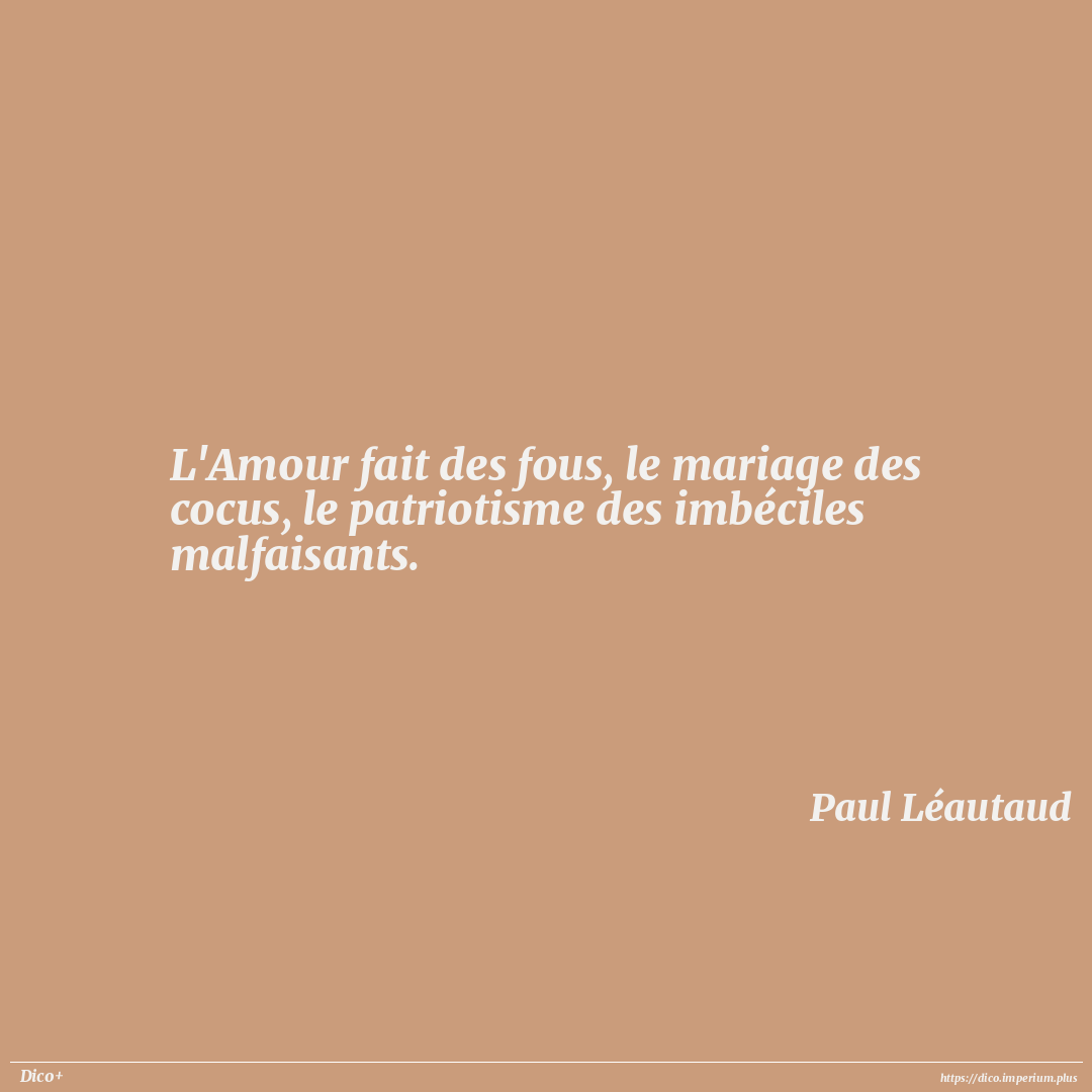 L'Amour fait des fous, le mariage des cocus, le patriotisme des imbéciles malfaisants.