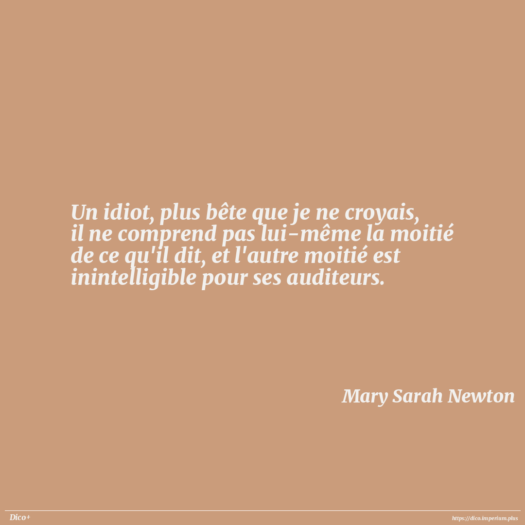 Un idiot, plus bête que je ne croyais, il ne comprend pas lui-même la moitié de ce qu'il dit, et l'autre moitié est inintelligible pour ses auditeurs.