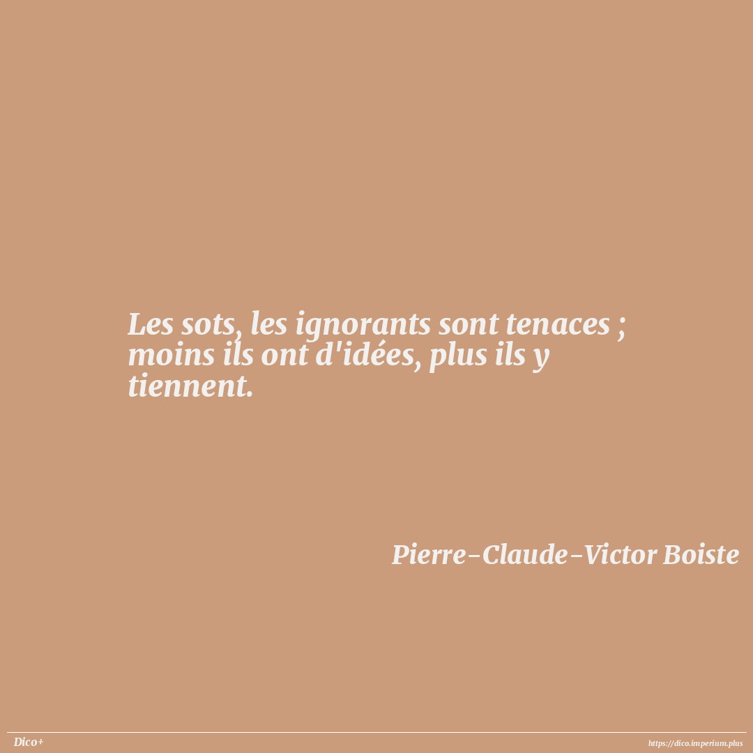 Les sots, les ignorants sont tenaces ; moins ils ont d'idées, plus ils y tiennent.
