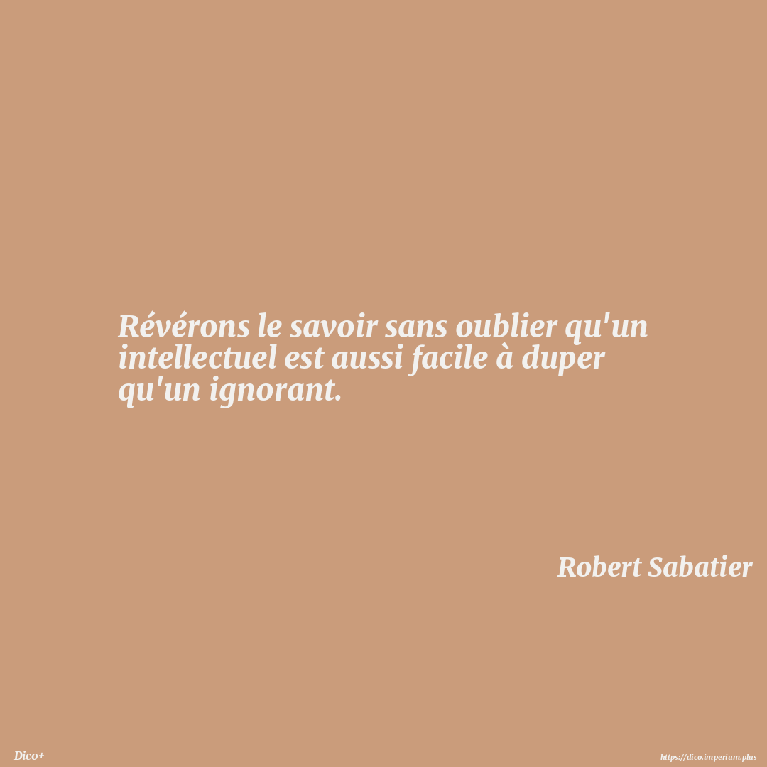 Révérons le savoir sans oublier qu'un intellectuel est aussi facile à duper qu'un ignorant.