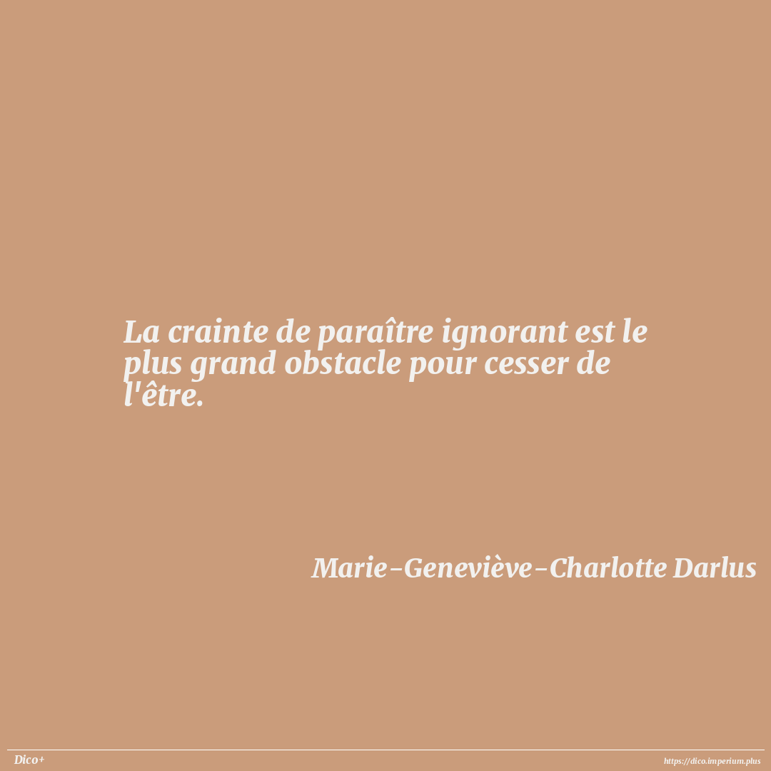 La crainte de paraître ignorant est le plus grand obstacle pour cesser de l'être.