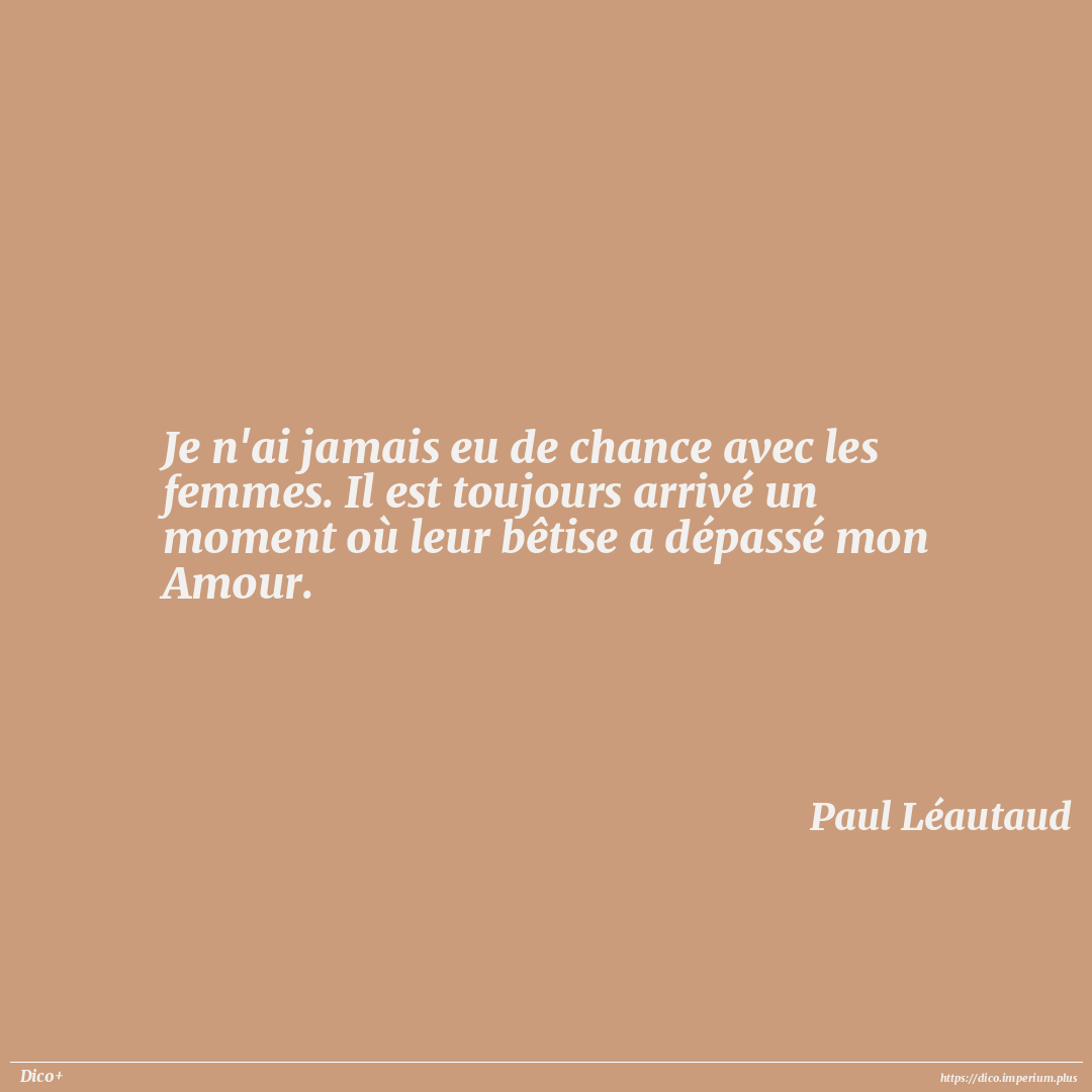 Je n'ai jamais eu de chance avec les femmes. Il est toujours arrivé un moment où leur bêtise a dépassé mon Amour.