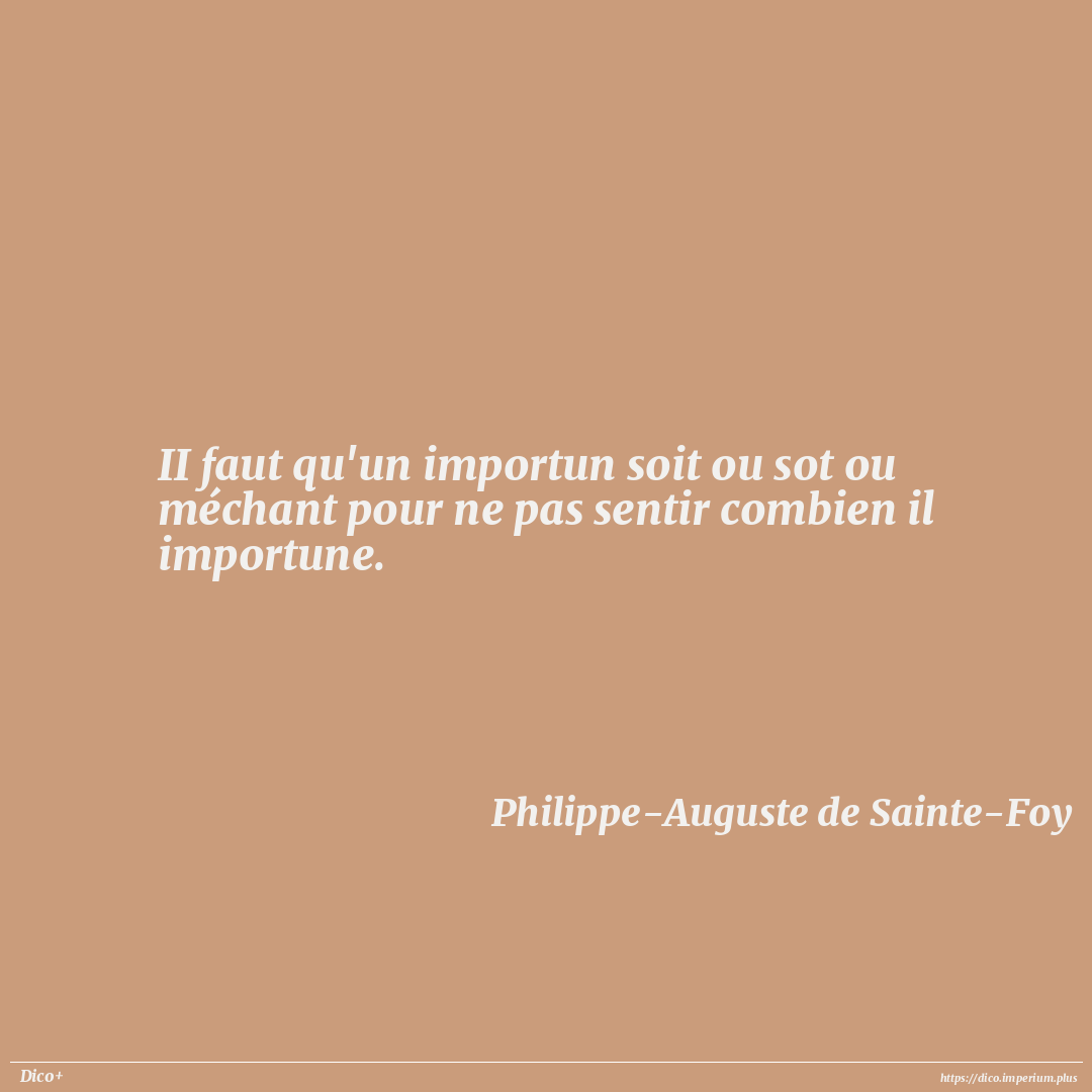 II faut qu'un importun soit ou sot ou méchant pour ne pas sentir combien il importune.