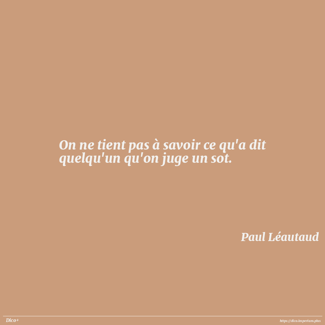 On ne tient pas à savoir ce qu'a dit quelqu'un qu'on juge un sot.
