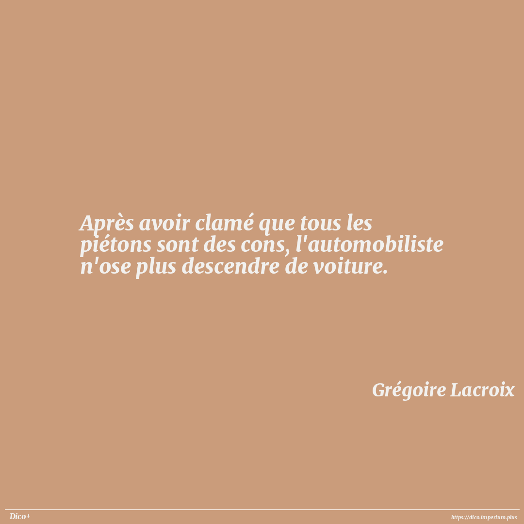 Après avoir clamé que tous les piétons sont des cons, l'automobiliste n'ose plus descendre de voiture.