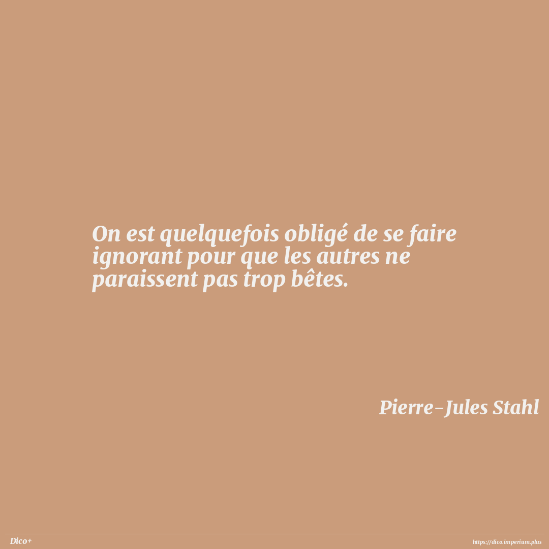 On est quelquefois obligé de se faire ignorant pour que les autres ne paraissent pas trop bêtes.