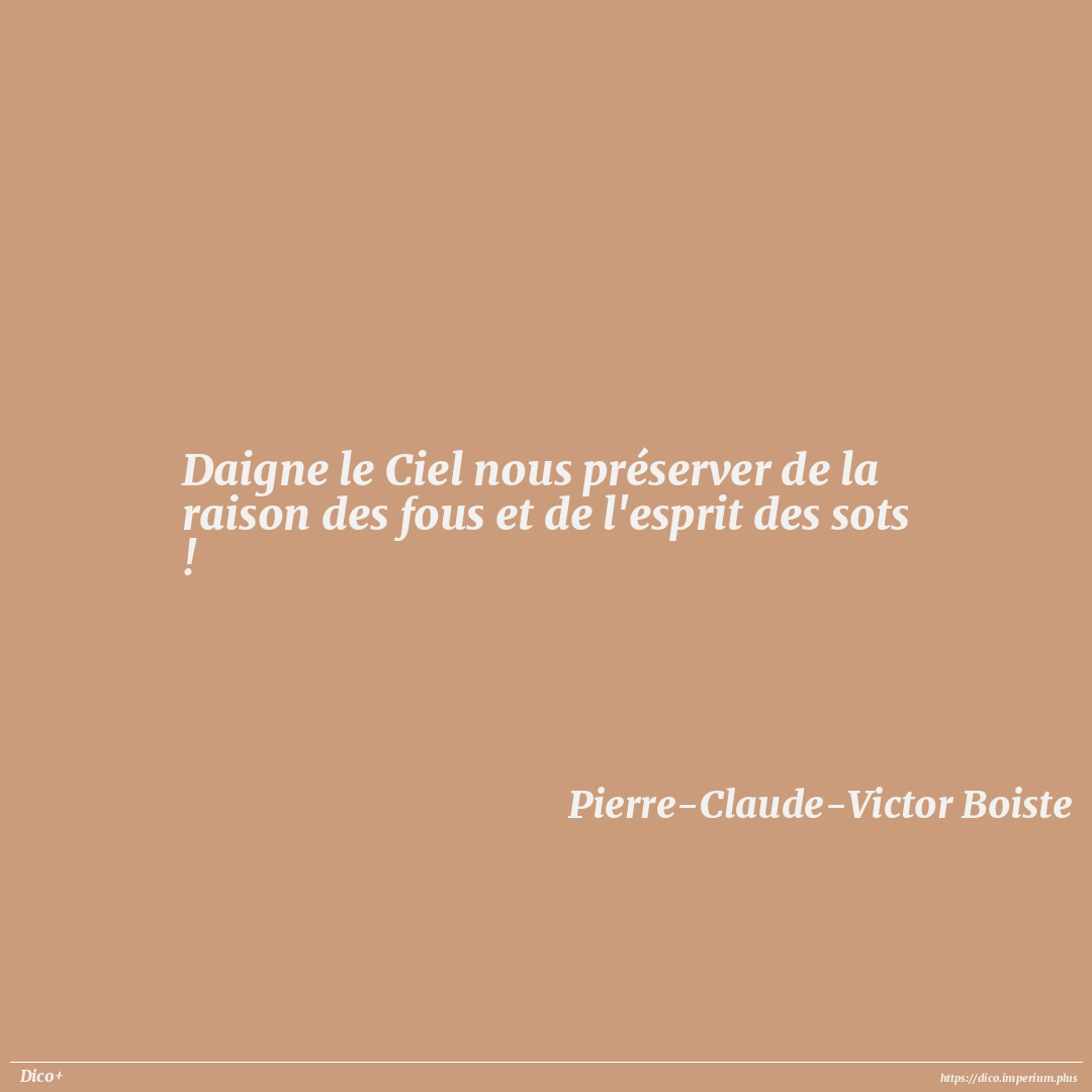 Daigne le Ciel nous préserver de la raison des fous et de l'esprit des sots !
