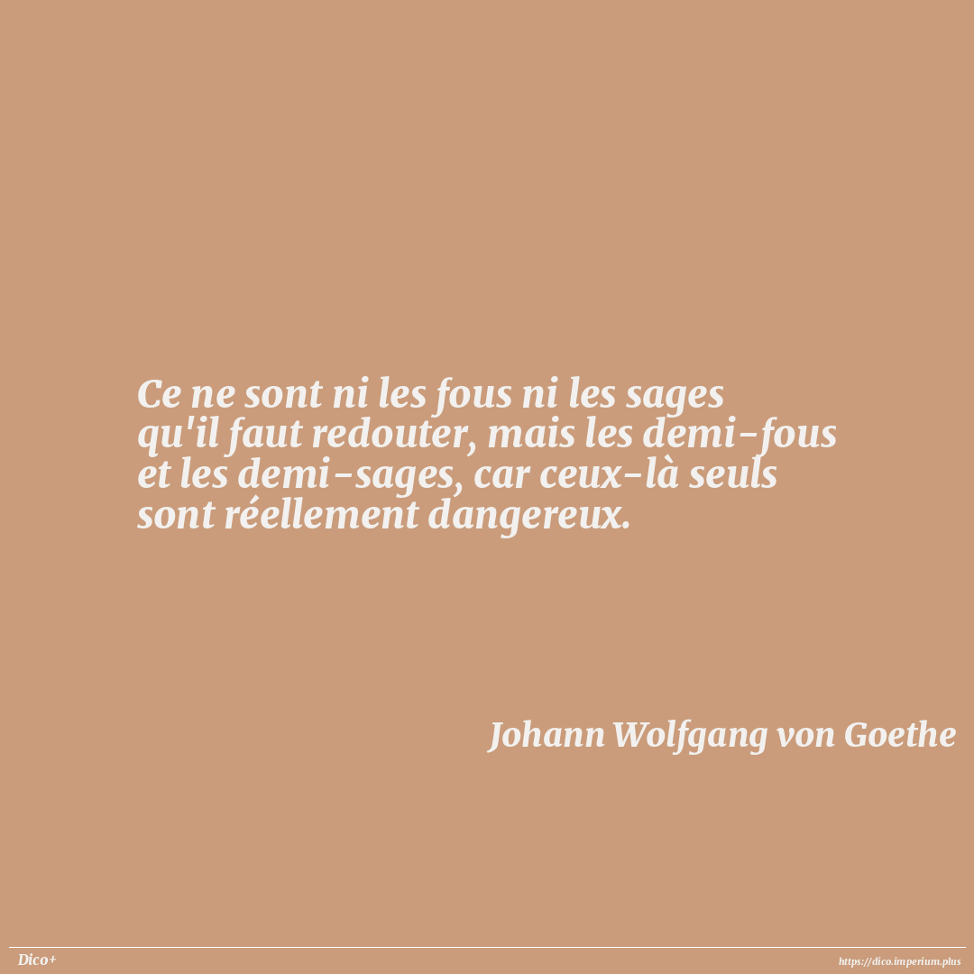 Ce ne sont ni les fous ni les sages qu'il faut redouter, mais les demi-fous et les demi-sages, car ceux-là seuls sont réellement dangereux.