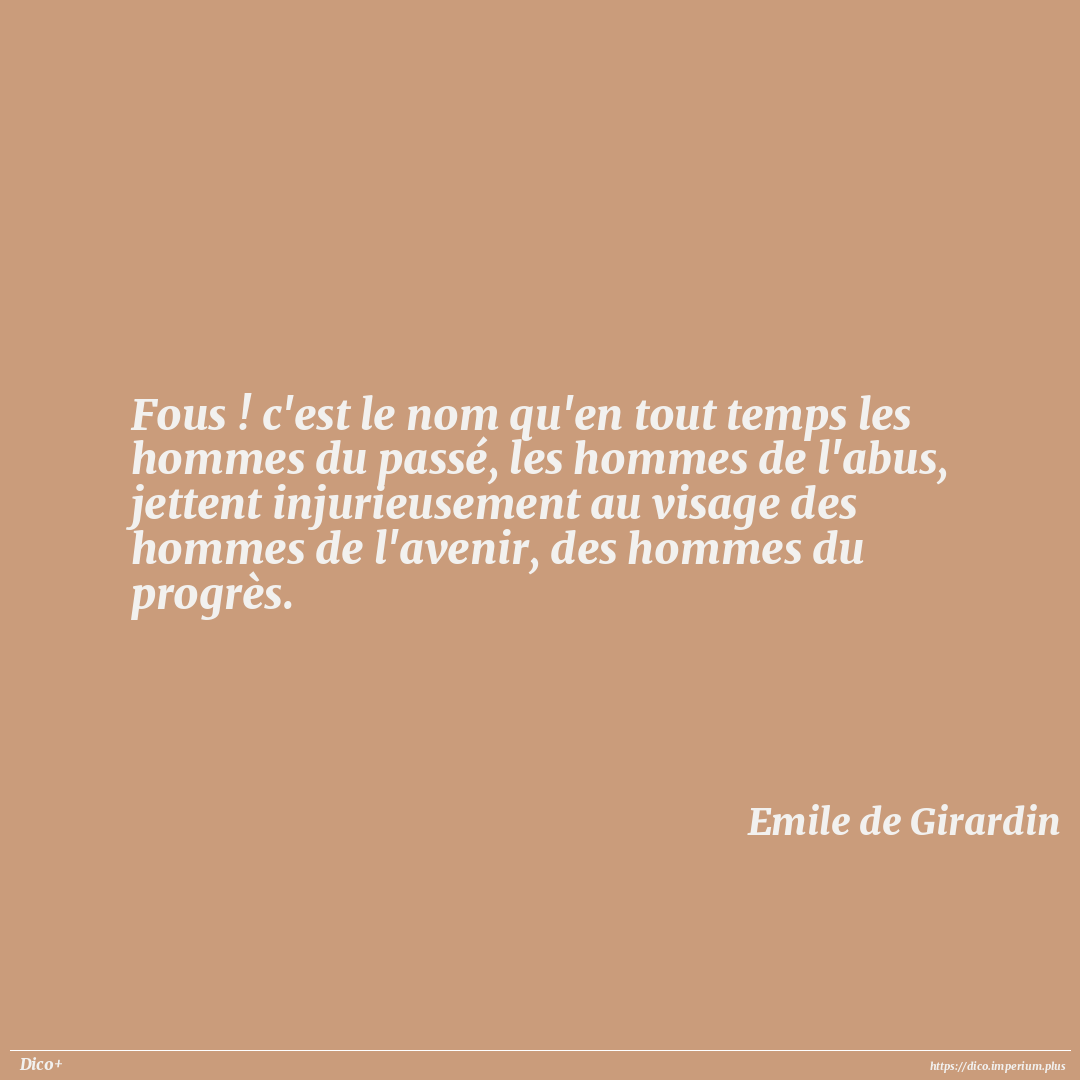 Fous ! c'est le nom qu'en tout temps les hommes du passé, les hommes de l'abus, jettent injurieusement au visage des hommes de l'avenir, des hommes du progrès.