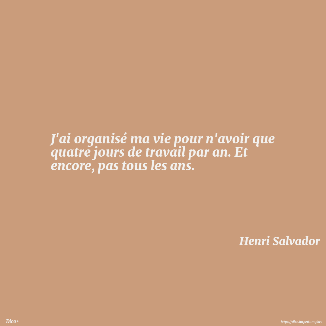 J'ai organisé ma vie pour n'avoir que quatre jours de travail par an. Et encore, pas tous les ans.
