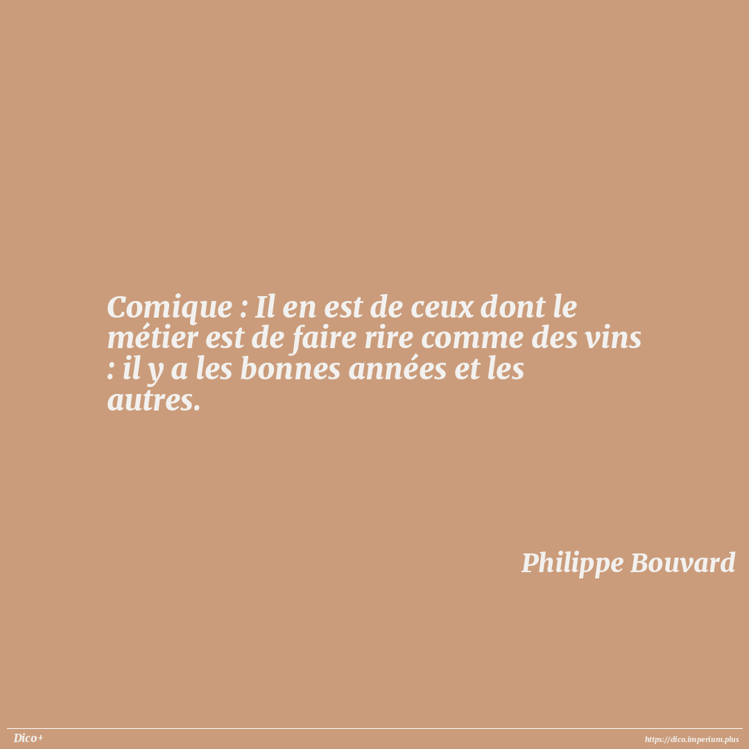 Comique : Il en est de ceux dont le métier est de faire rire comme des vins : il y a les bonnes années et les autres.