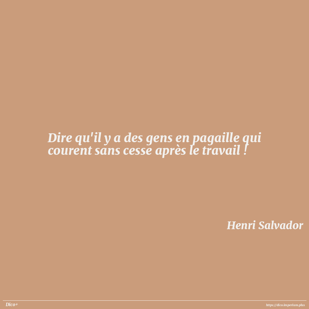Dire qu'il y a des gens en pagaille qui courent sans cesse après le travail !