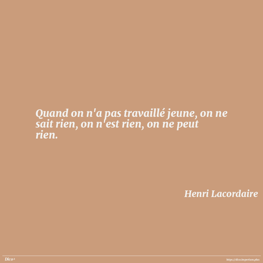 Quand on n'a pas travaillé jeune, on ne sait rien, on n'est rien, on ne peut rien.