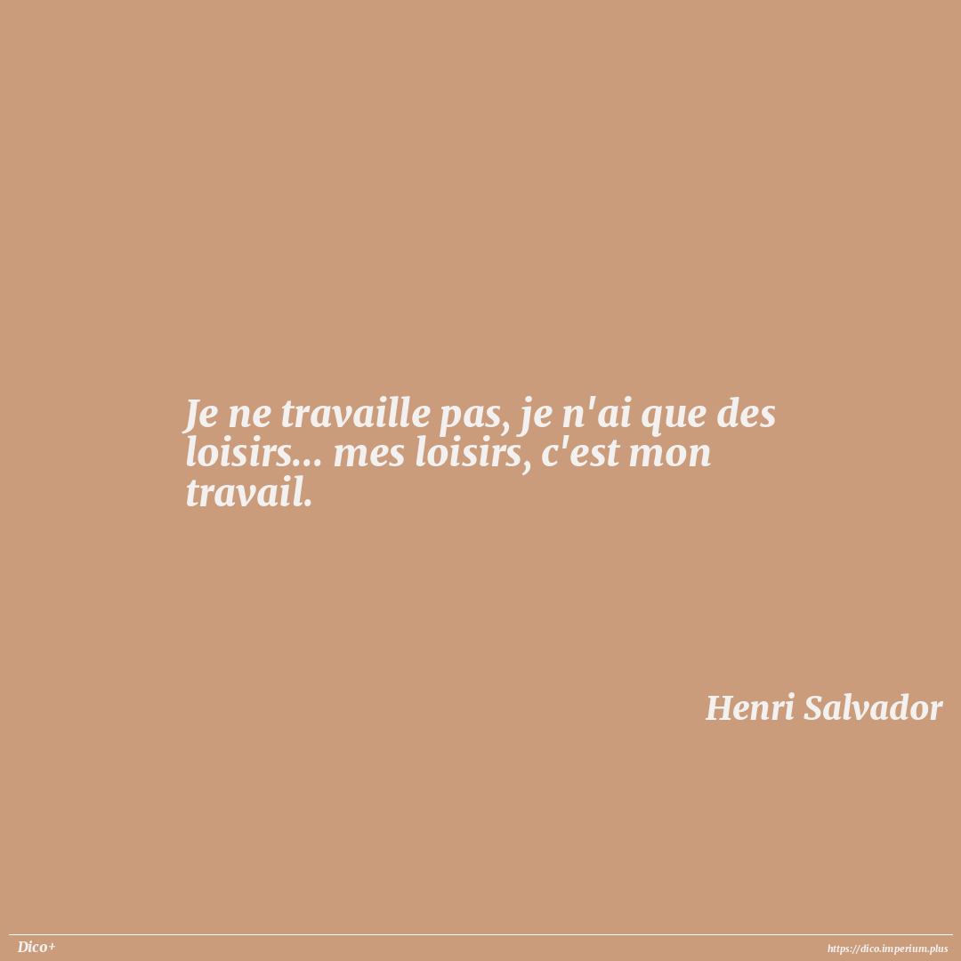 Je ne travaille pas, je n'ai que des loisirs... mes loisirs, c'est mon travail.