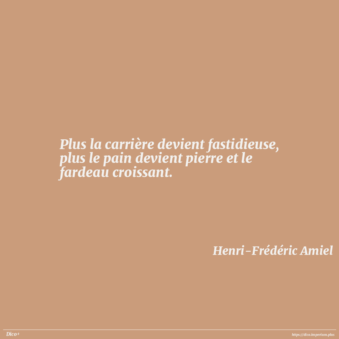 Plus la carrière devient fastidieuse, plus le pain devient pierre et le fardeau croissant.