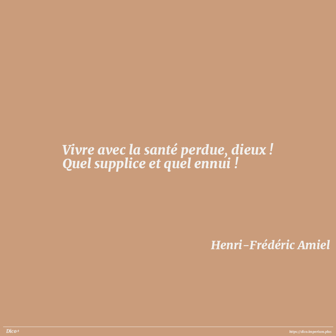 Vivre avec la santé perdue, dieux ! Quel supplice et quel ennui !