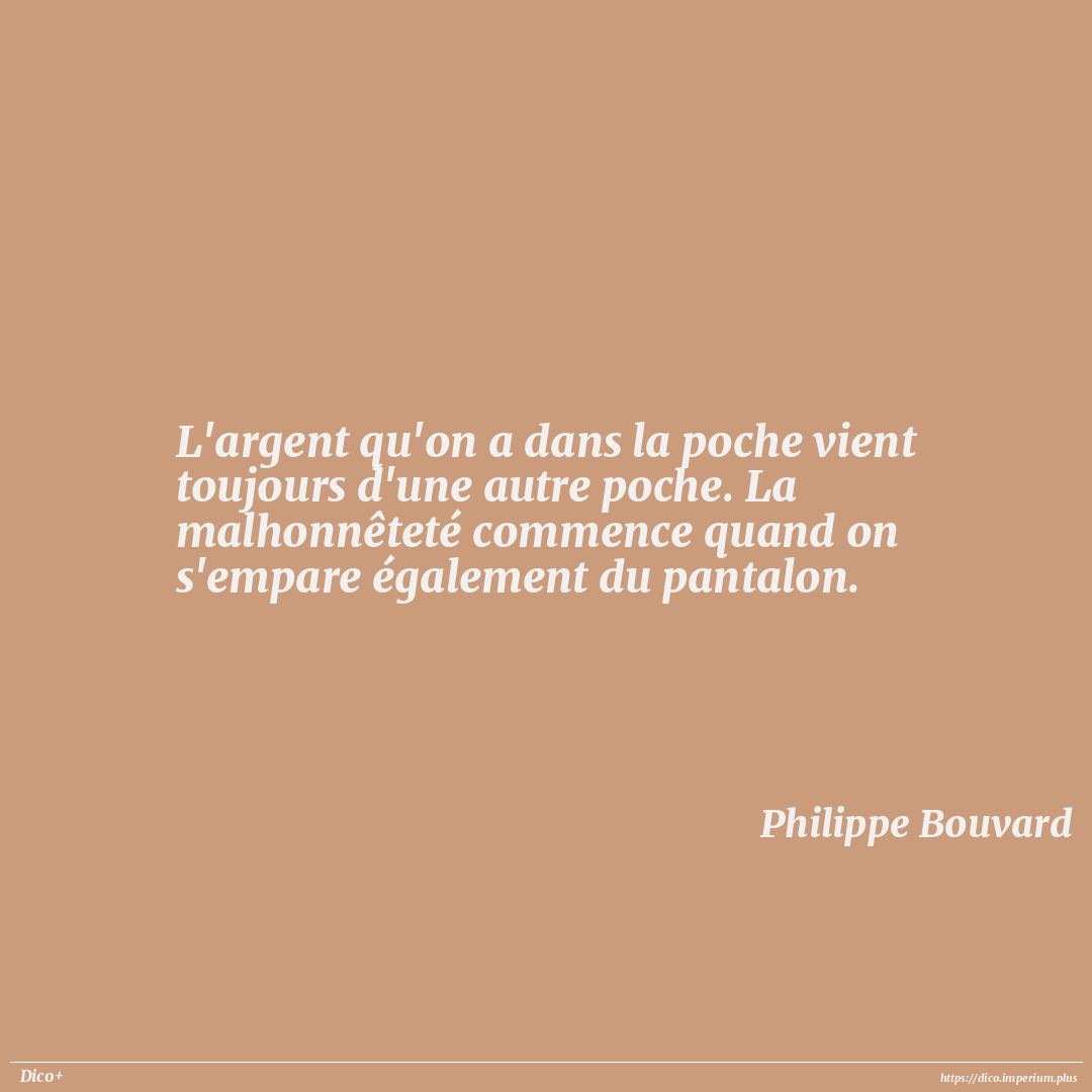 L'argent qu'on a dans la poche vient toujours d'une autre poche. La malhonnêteté commence quand on s'empare également du pantalon.