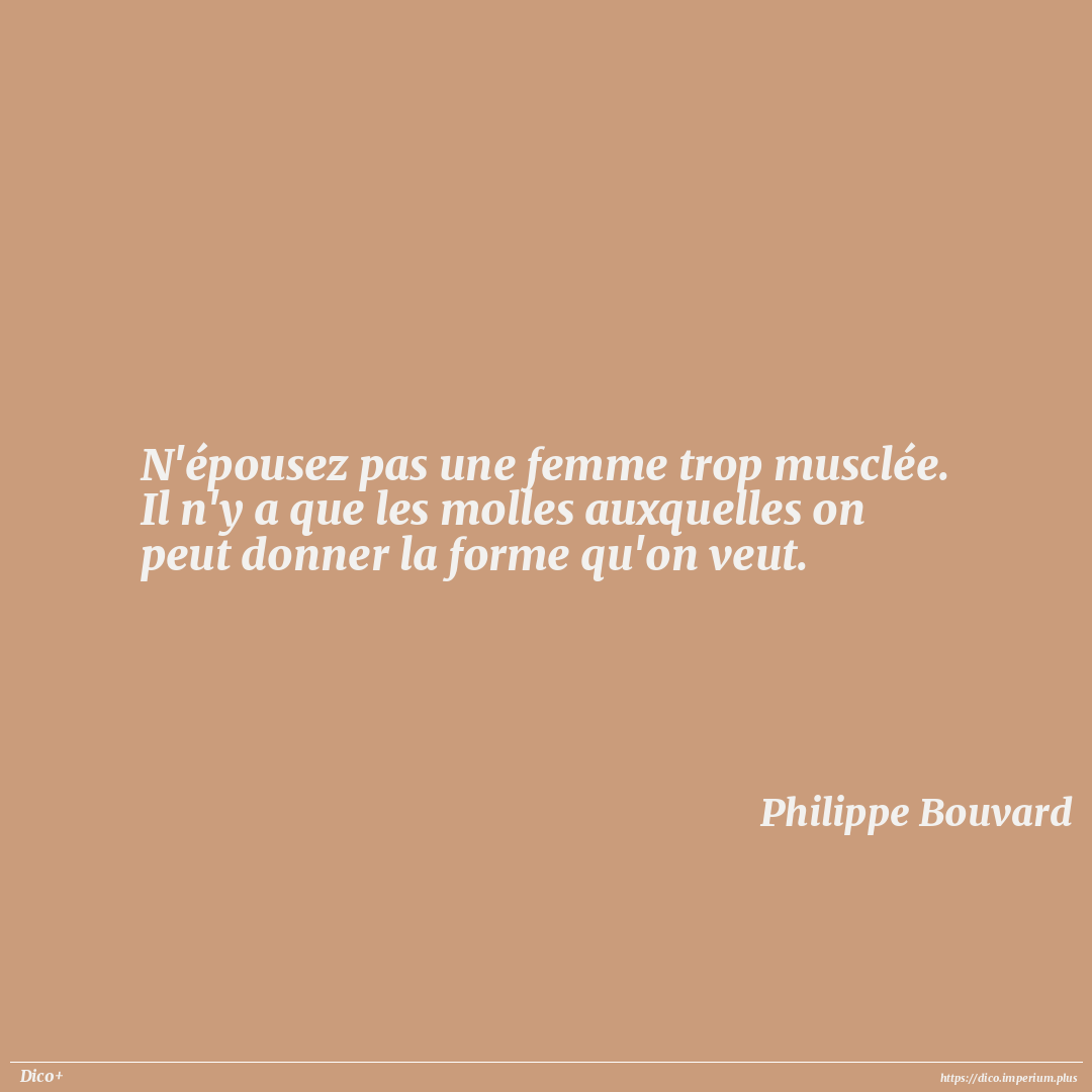 N'épousez pas une femme trop musclée. Il n'y a que les molles auxquelles on peut donner la forme qu'on veut.