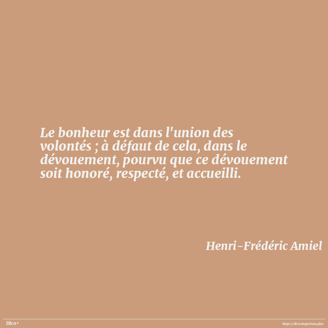 Le bonheur est dans l'union des volontés ; à défaut de cela, dans le dévouement, pourvu que ce dévouement soit honoré, respecté, et accueilli.