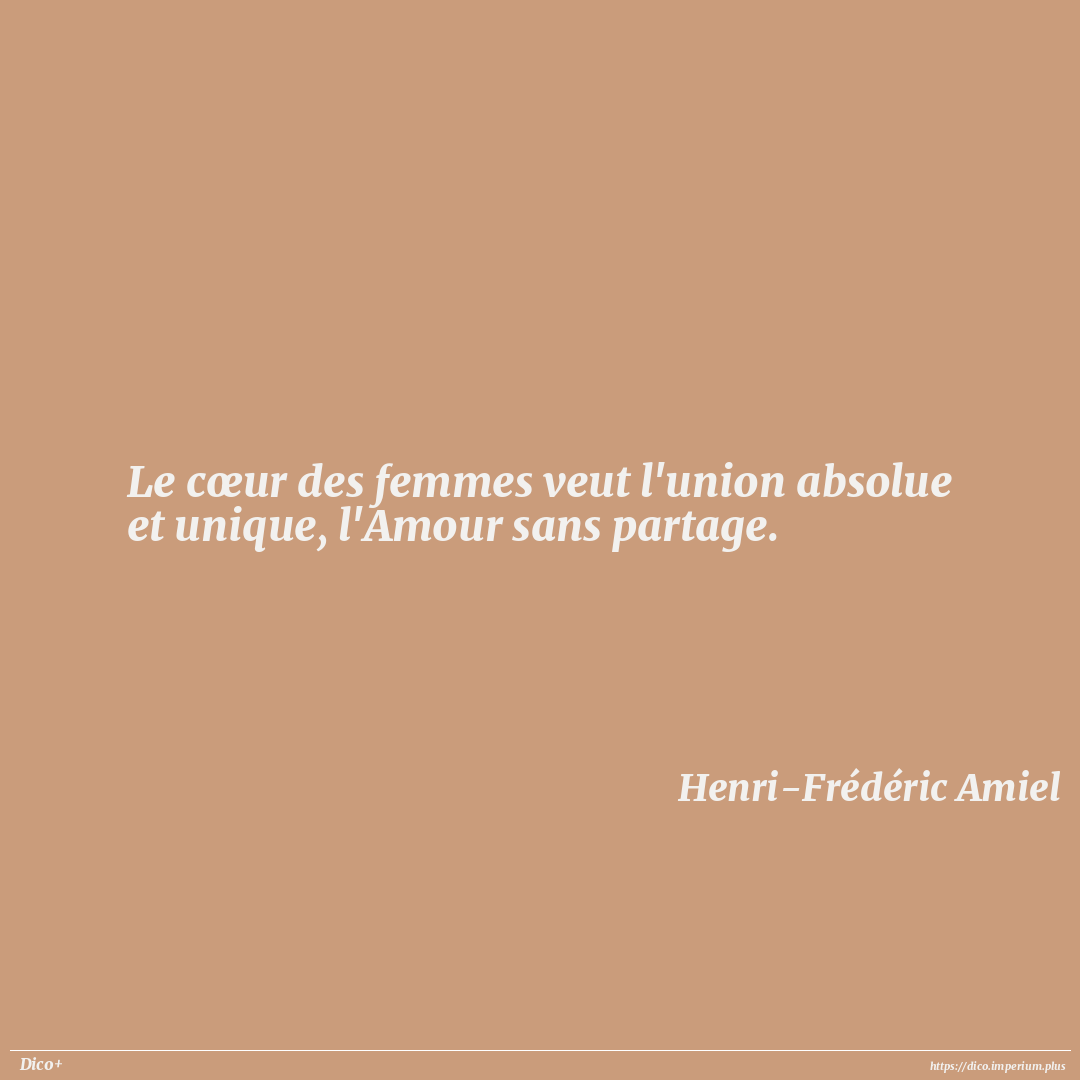Le cœur des femmes veut l'union absolue et unique, l'Amour sans partage.