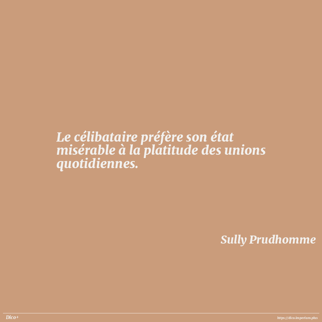 Le célibataire préfère son état misérable à la platitude des unions quotidiennes.