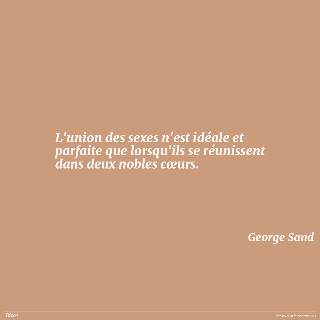 L'union des sexes n'est idéale et parfaite que lorsqu'ils se réunissent dans deux nobles cœurs.