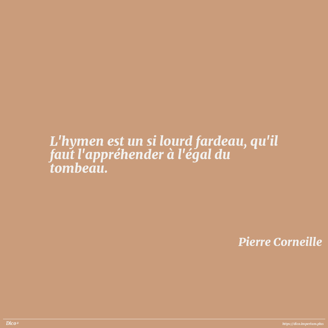 L'hymen est un si lourd fardeau, qu'il faut l'appréhender à l'égal du tombeau.