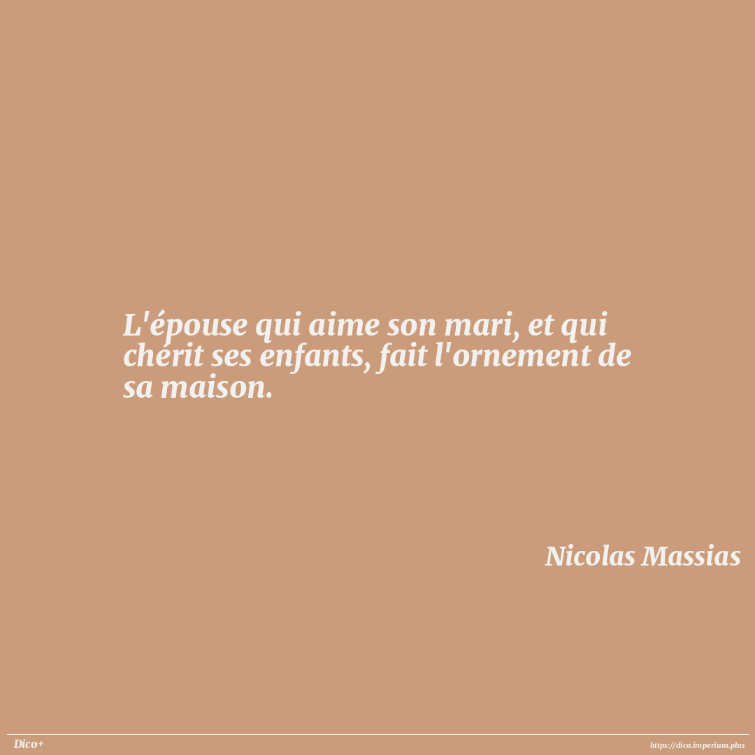 L'épouse qui aime son mari, et qui chérit ses enfants, fait l'ornement de sa maison.