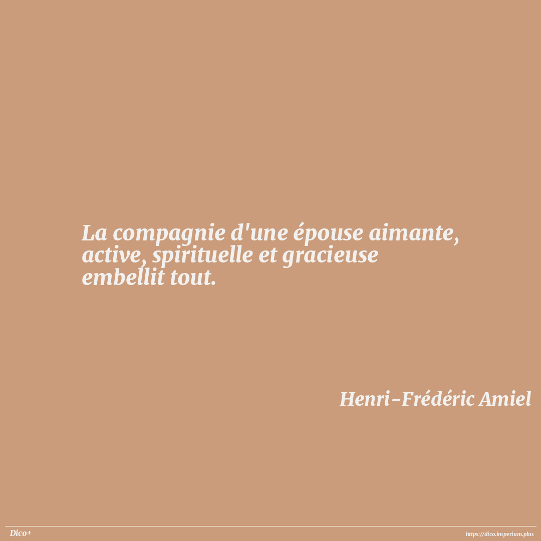La compagnie d'une épouse aimante, active, spirituelle et gracieuse embellit tout.