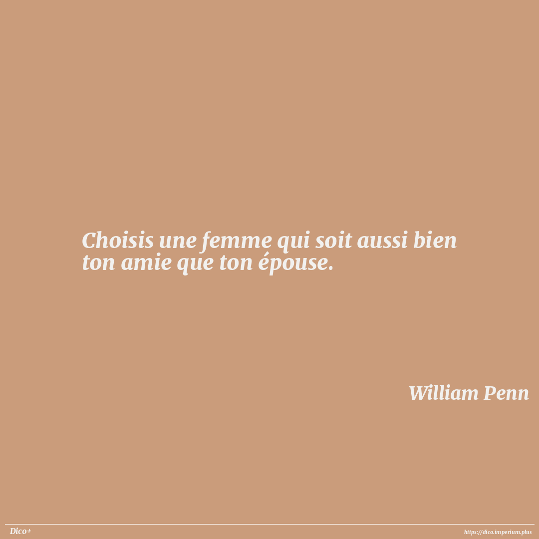Choisis une femme qui soit aussi bien ton amie que ton épouse.