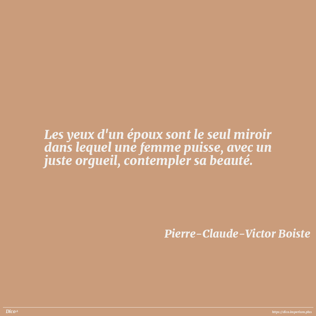 Les yeux d'un époux sont le seul miroir dans lequel une femme puisse, avec un juste orgueil, contempler sa beauté.