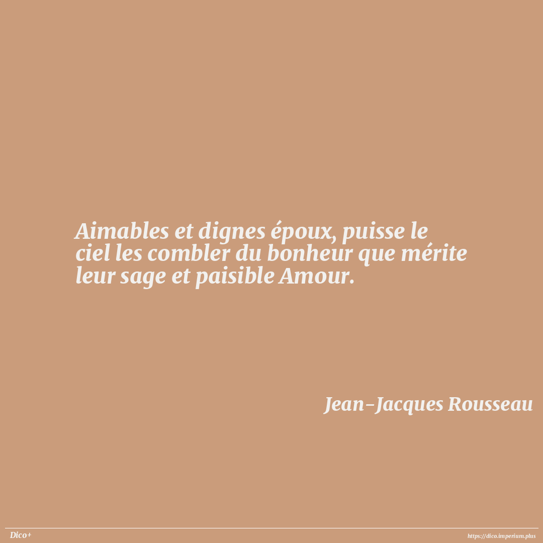 Aimables et dignes époux, puisse le ciel les combler du bonheur que mérite leur sage et paisible Amour.