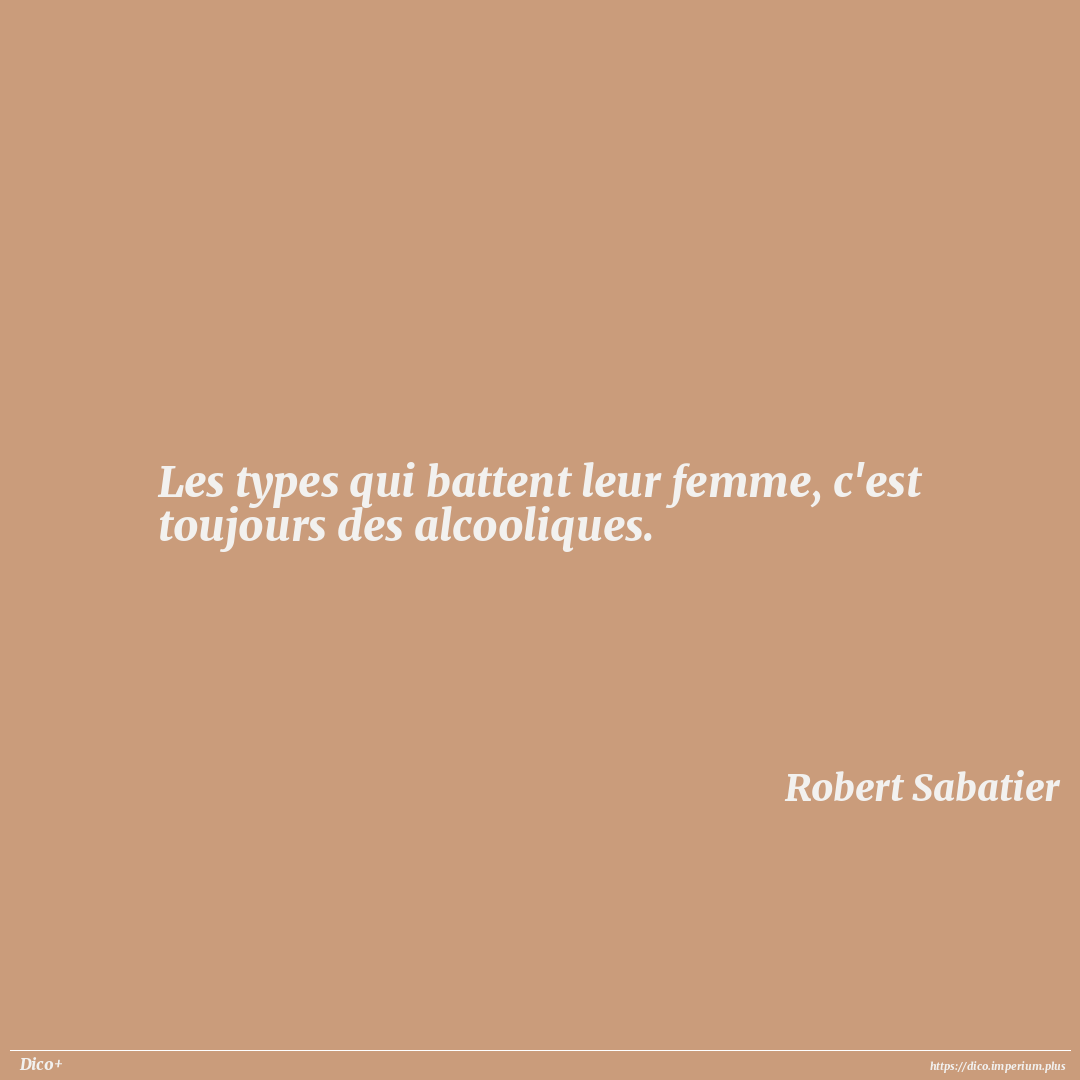 Les types qui battent leur femme, c'est toujours des alcooliques.