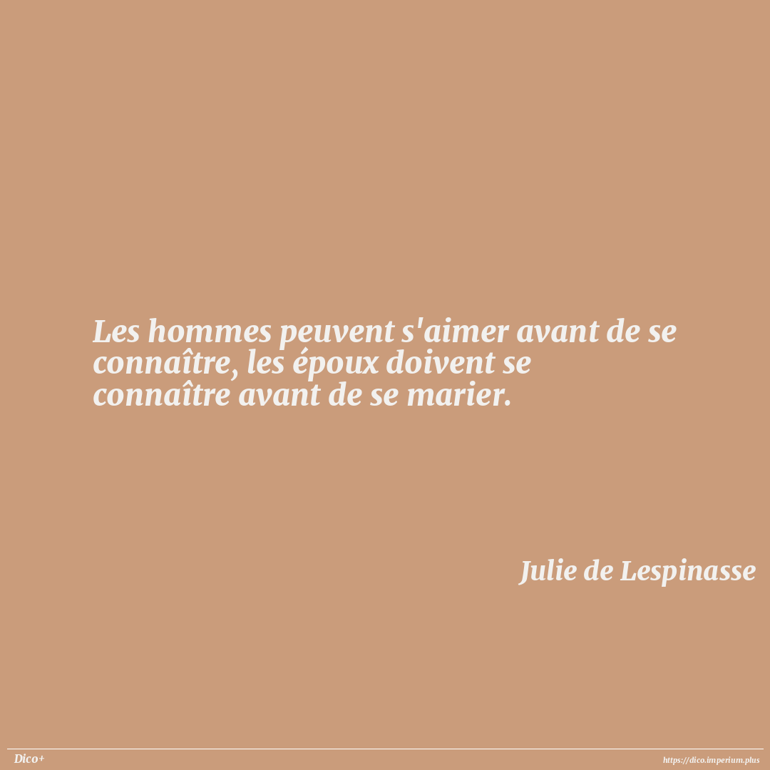 Les hommes peuvent s'aimer avant de se connaître, les époux doivent se connaître avant de se marier.