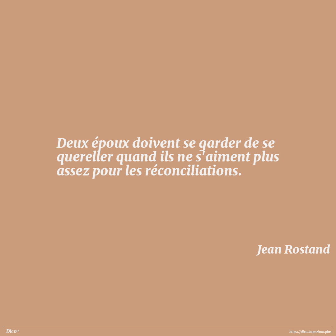 Deux époux doivent se garder de se quereller quand ils ne s'aiment plus assez pour les réconciliations.
