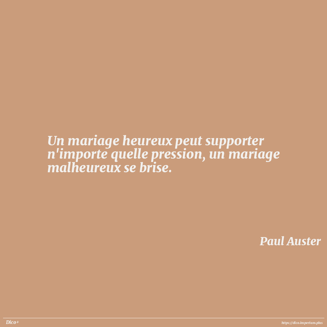 Un mariage heureux peut supporter n'importe quelle pression, un mariage malheureux se brise.