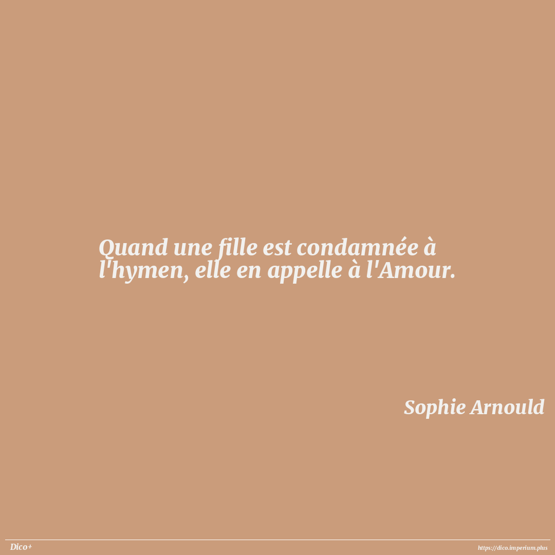 Quand une fille est condamnée à l'hymen, elle en appelle à l'Amour.