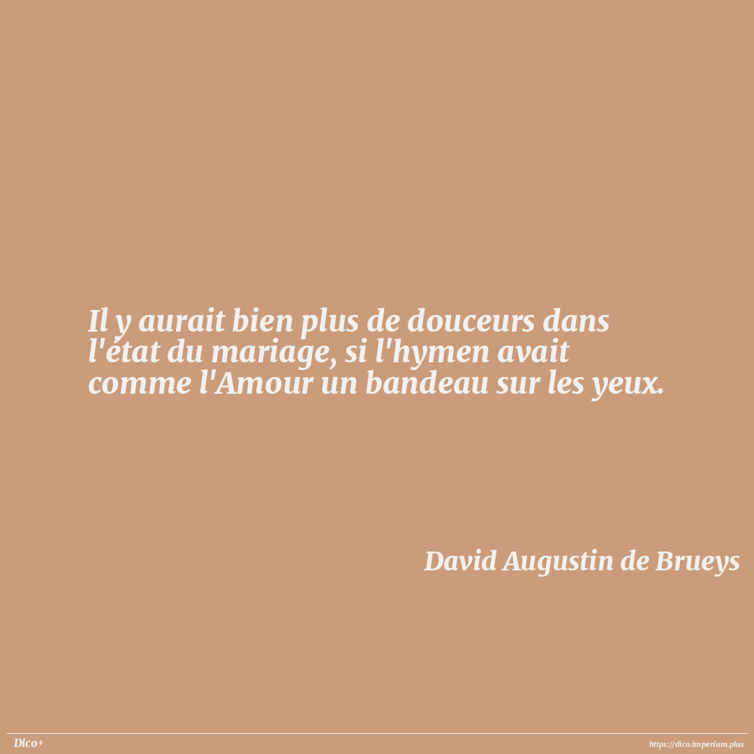 Il y aurait bien plus de douceurs dans l'état du mariage, si l'hymen avait comme l'Amour un bandeau sur les yeux.