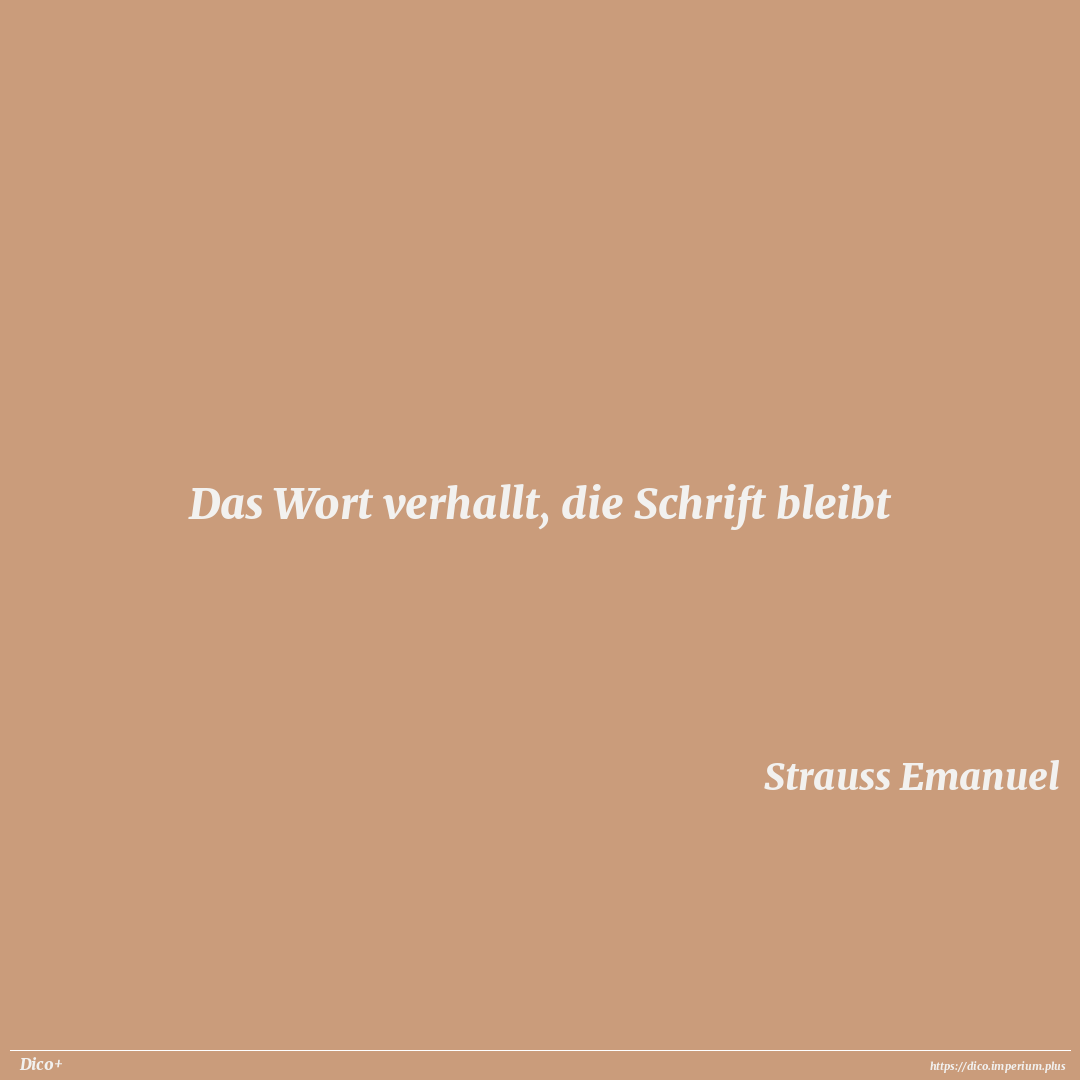 Das Wort verhallt, die Schrift bleibt
