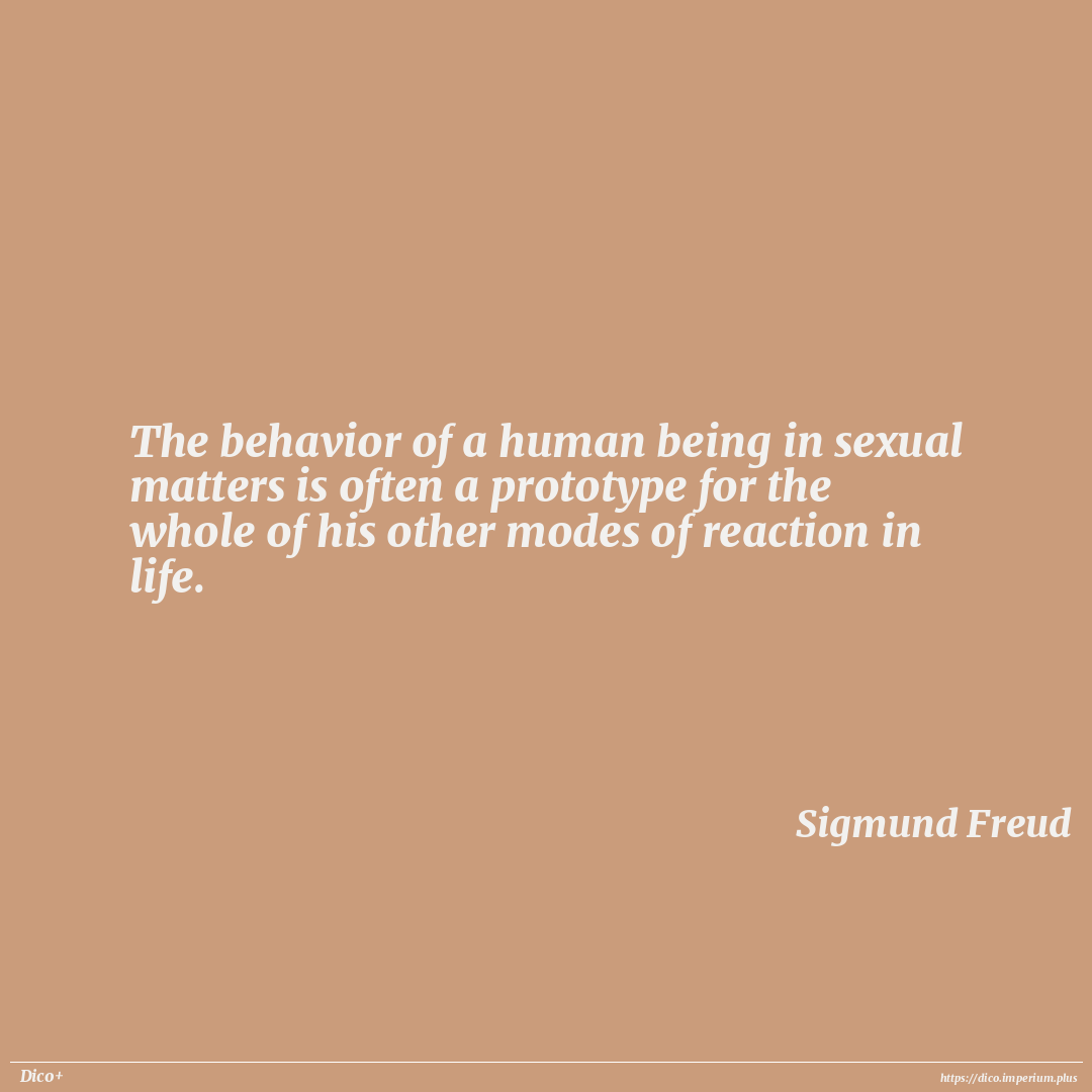 The behavior of a human being in sexual matters is often a prototype for the whole of his other modes of reaction in life.