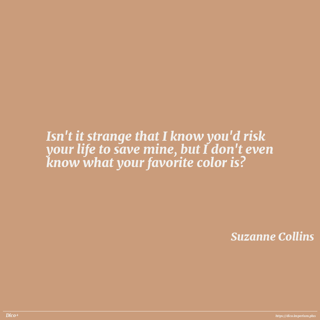 Isn't it strange that I know you'd risk your life to save mine, but I don't even know what your favorite color is?